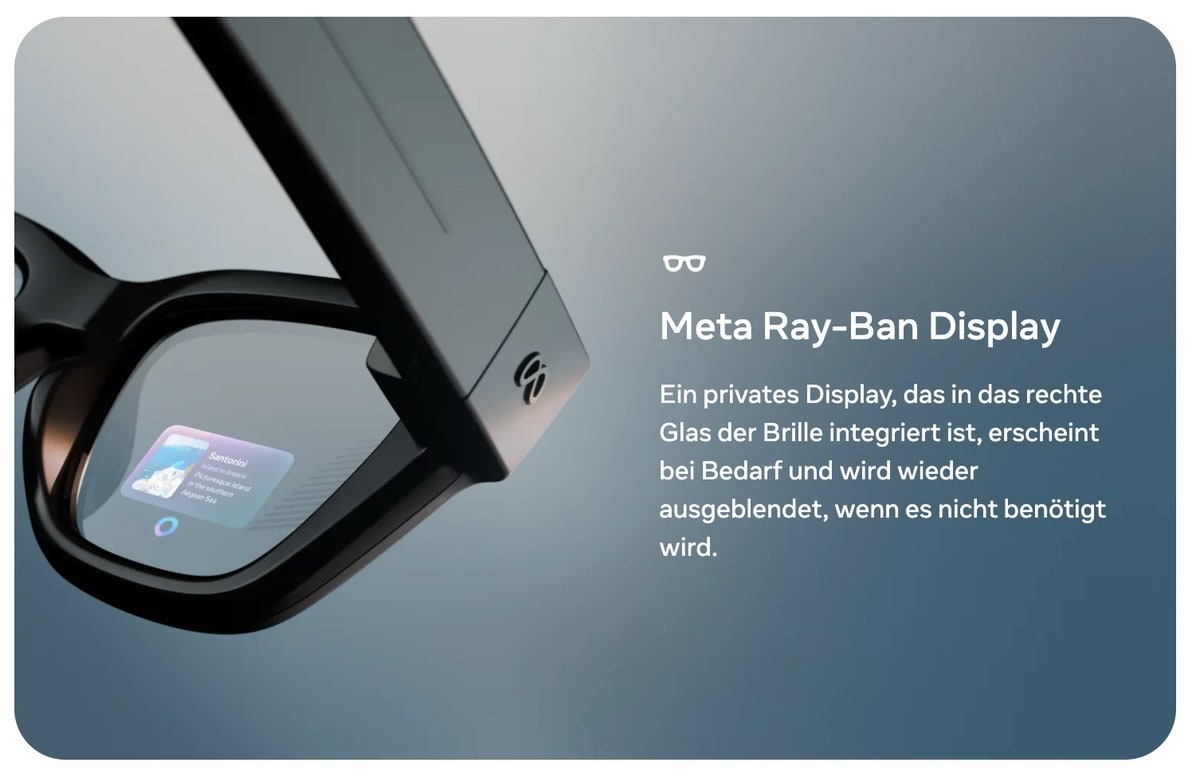 Mark Zuckerberg hat gestern die neue Meta Ray-Ban Display vorgestellt. Die smarte Brille kommt mit einem farbigen High-Resolution-Display und einem speziellen Armband zur Steuerung. Klingt erst mal nach Science-Fiction, ist aber ab Ende September Realität. Die Brille sieht auf den ersten Blick wie eine klassische Ray-Ban aus, hat es aber technisch mehr in sich. Das Display ist dezent seitlich platziert und stört laut Zuckerberg nicht beim normalen Durchblick. Es erscheint nur bei Bedarf und zeigt dann Nachrichten, Fotos, Übersetzungen oder Antworten der integrierten KI an.