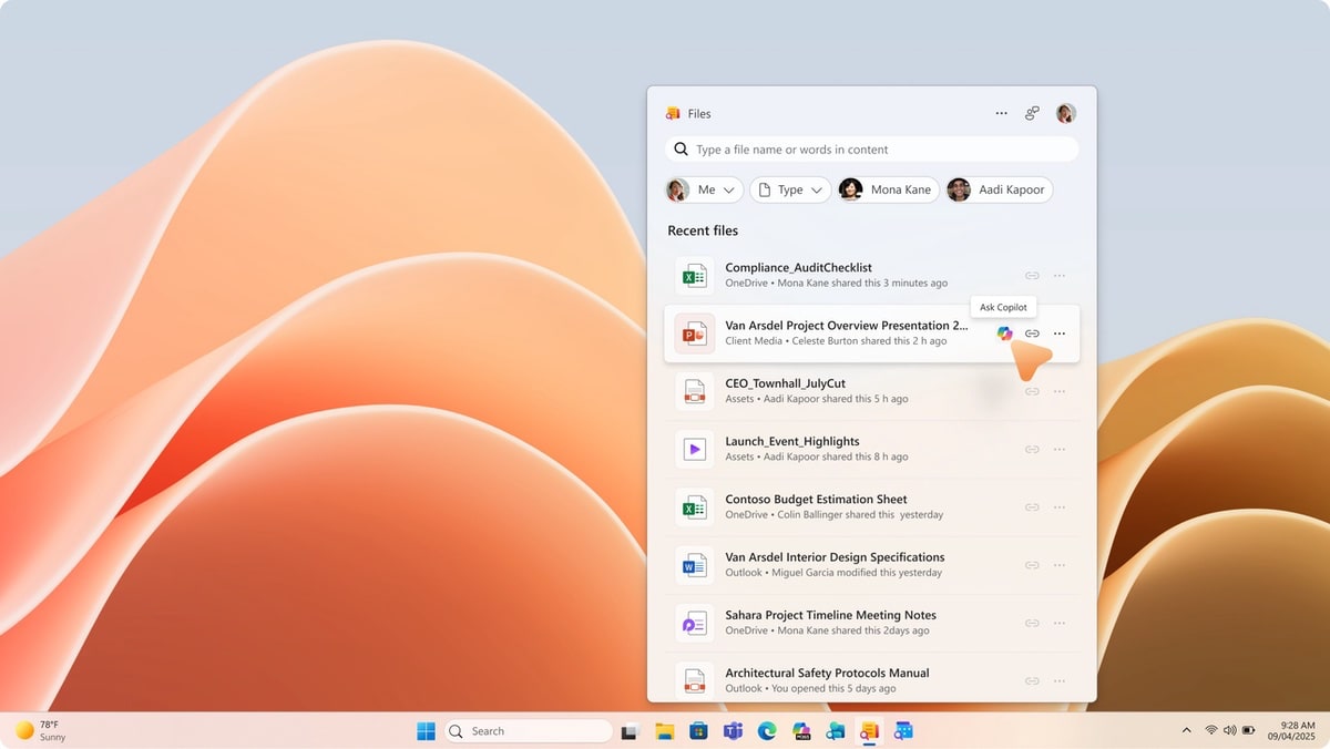 Mit der Files-App haben Nutzer Zugriff auf Microsoft-365-Dateien und lokale Downloads. Vorschauen und das Teilen mit Kollegen sind integriert. Die Filterung nach Personen, Dateitypen oder Aktivitäten erleichtert das Auffinden.
