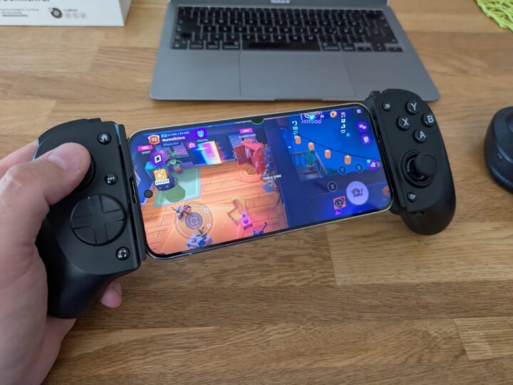 Der Kishi V3 Pro liegt angenehm in der Hand und ermöglicht auch längere Gaming-Sessions, ohne dass mir die Hand vom Gewicht oder der Haltung müde wird – liegt aber natürlich auch immer am Gewicht des eingebundenen Smartphones. Die Griffigkeit ist gut, auch bei leicht schwitzigen Händen rutscht der Controller nicht. Die Gewichtsverteilung ist ausgewogen, sodass das Smartphone-Controller-Gespann nicht kopflastig wird.