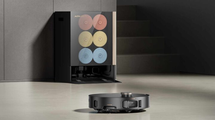 Mova bringt mit dem Mobius 60 einen neuen Saug- und Wischroboter auf den Markt. Im Lieferumfang ist hier auch eine große Entleerungsstation enthalten, die auch als sogenannte „MopSwap Hub“ dient. Der Clou ist nämlich, dass automatisch drei verschiedene Mopps gewechselt werden können. Diese sind jeweils für verschiedene Oberflächen gedacht.