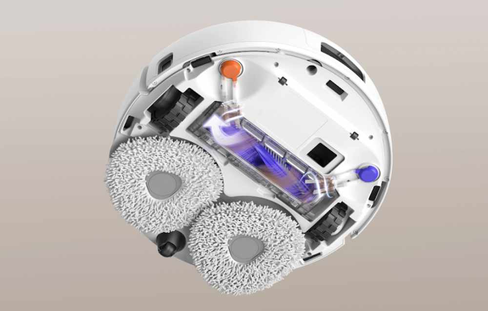 Dazu kommt ein ausfahrbares Mopp-System, das auch Ränder und Ecken gut erreichen soll. Die Multifunktionsstation kann wiederum die Mopps nach dem Wischen mit einer Temperatur von 45 bis 75° Celsius durchspülen. Das tötet laut dem Hersteller 99,99 % der Bakterien ab. Um Gerüchte zu vermeiden, werden anschließend die Mopps, Rohre und der Staubbeutel mit 40° heißer Luft getrocknet. Der integrierte Staubbehälter mit 2,5 l soll für bis zu 120 Tage Staub fassen. Erst dann müsst ihr also den Beutel auswechseln.
