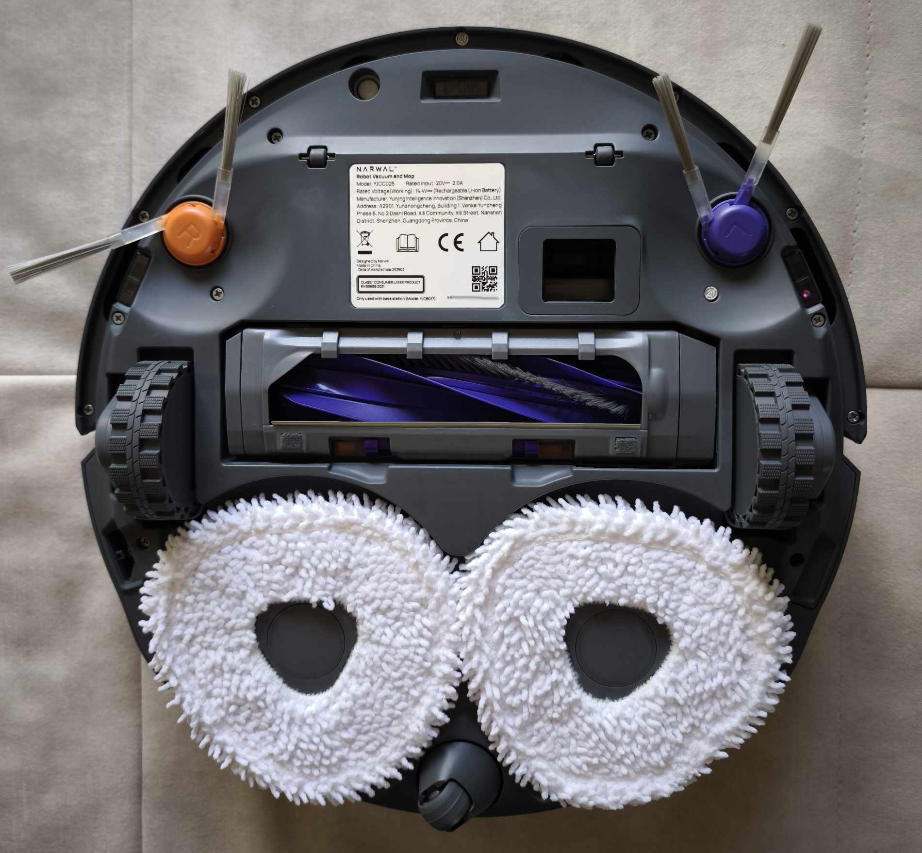 Da läuft es wie bei anderen Saugrobotern auch: Ohne die App stehen nur rudimentäre Funktionen zur Verfügung. In der App lasst ihr den Narwal Freo Z10 Ultra eure Raumkarten erstellen, regelt die Saugstärke, erstellt Zeitpläne, definiert Sperrzonen und vieles mehr. Da muss ich euch vermutlich nicht viel erzählen, denn mittlerweile nehmen sich die Hersteller da gar nicht mehr so viel. An der Unterseite des Roboters sitzt im Übrigen die Walze, welche Narwal auch als „DualFlow Tangle-Free System“ bewirbt. Allerdings macht z. B. der Dreame L50 Pro Ultra es da aus meiner Sicht noch etwas besser, denn jener verwendet gleich zwei Rollen. Somit ist die Verhedderungsgefahr da noch etwas geringer.