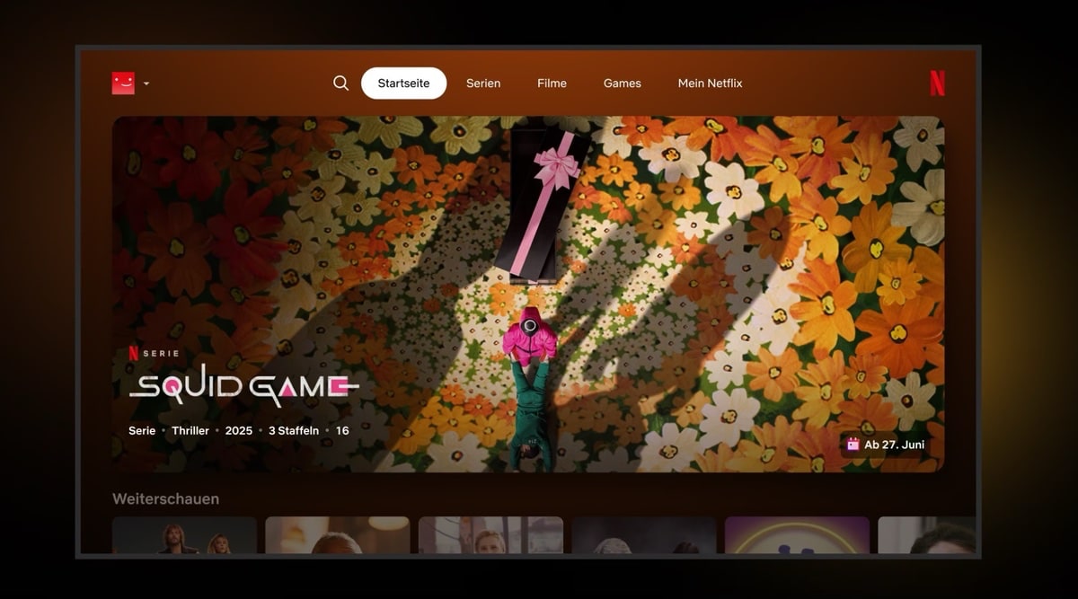 Auffallend ist vor allem, dass die Navigationsleiste jetzt am oberen Bildschirmrand zu finden ist. Laut Changelog gibt es „mehr Infos auf einen Blick“ – ich hätte das eher umgekehrt gesehen, da beispielsweise in den aktuellen Top-Listen nun mehr maximal drei Titel auf einmal sichtbar sind. Das waren davor mehr. Statt einer Flut von Titelbildern zeigt die Oberfläche jetzt weniger Titel, diese dafür aber deutlich prominenter. Fährt man mit dem Cursor über einen Titel, expandiert dieser zu einer größeren Ansicht mit zusätzlichen Informationen wie Kurzbeschreibung und Badges für besondere Merkmale – etwa „Häufig erneut geschaut“ oder „13 Wochen in den Top 10“.