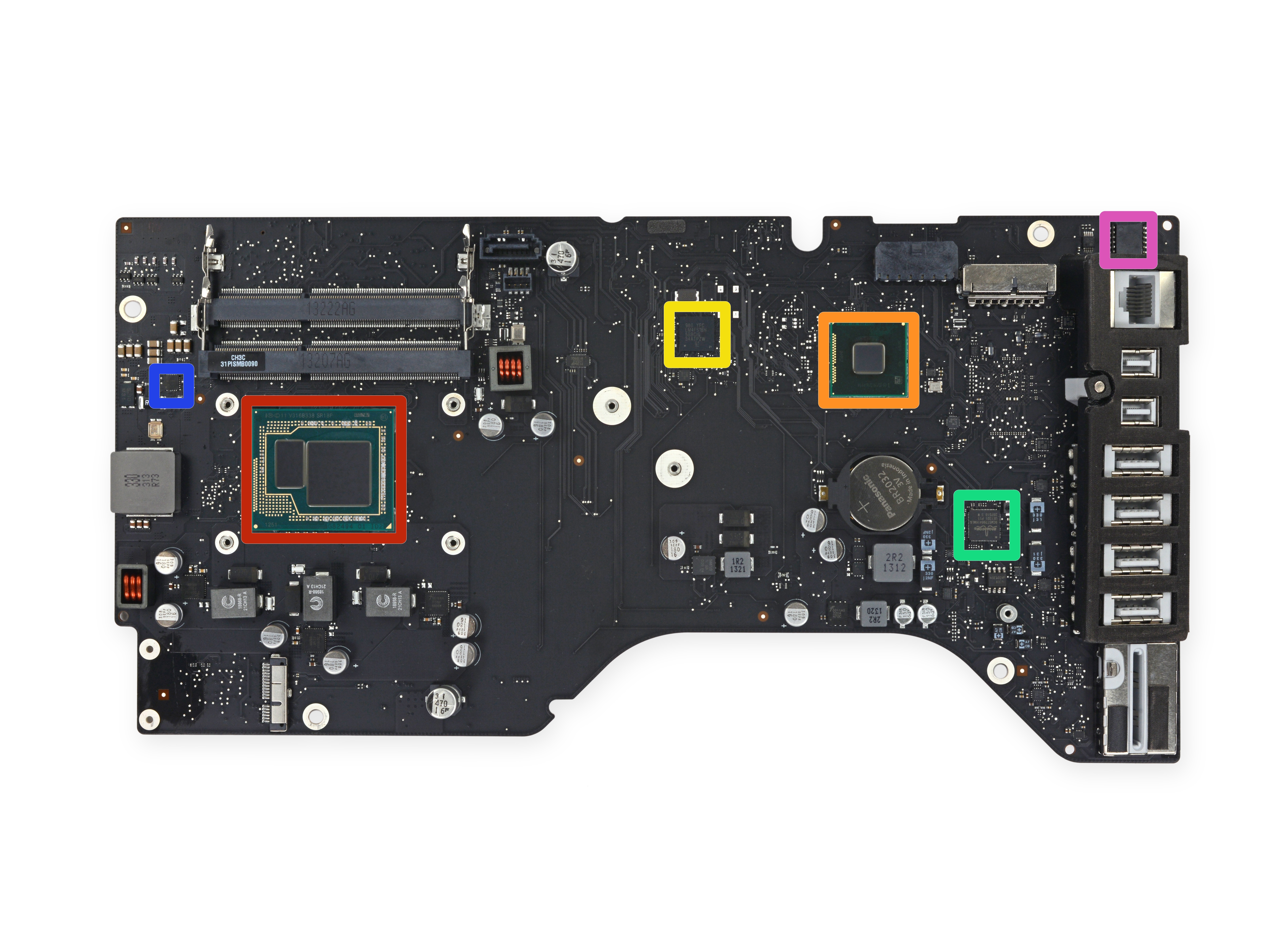 Das Board des Einsteiger-iMac ist auch kleiner als das der stärker ausgestatteten Geräte (vgl. iFixit-Teardown und die neuen Bilder)