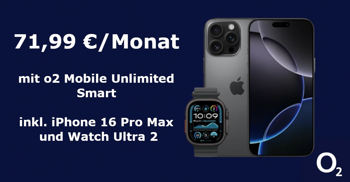o2: iPhone 16 Pro Max & Watch Ultra 2 – Apple in Bestform, ohne Datenlimit