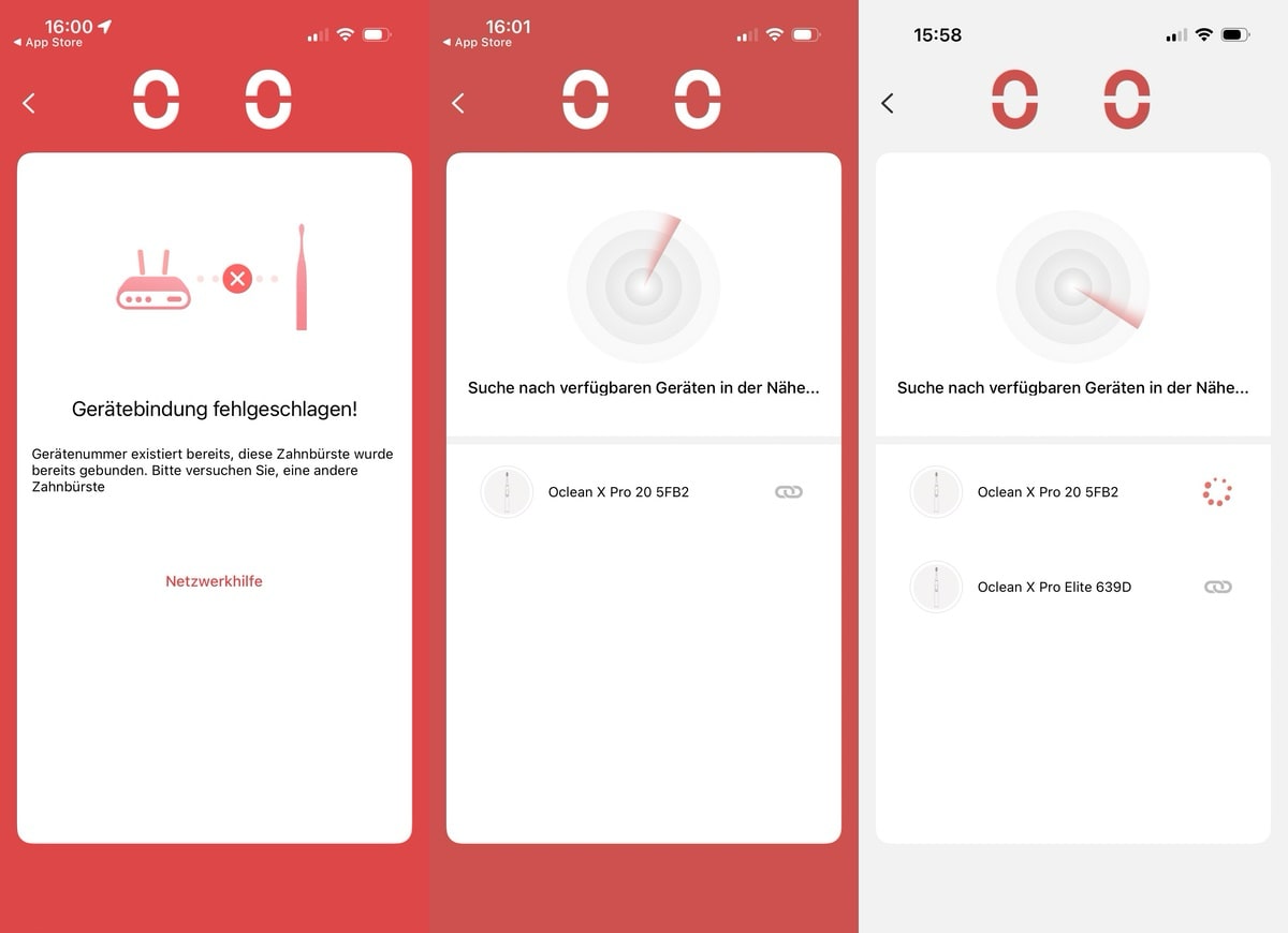 Das dollste Ding war aber, als die Software, wie oben angesprochen, aktualisiert wurde. Zack, war die Bürste aus meinem Account verschwunden. Neu einrichten? Ging nicht. Die Bürste war gekoppelt und ließ sich nicht entkoppeln. Keine. Verdammte. Chance. Da musste ich den Support anschreiben, dem meine Seriennummer mitteilen, damit die Bürste entkoppelt wird. Man kann die Bürste nicht selbst resetten. Holy fu**, das ist kein verdammtes Smartphone mit Diebstahl-Sperre! Immerhin konnte „mein“ Problem nach 12 Tagen dann gelöst werden.