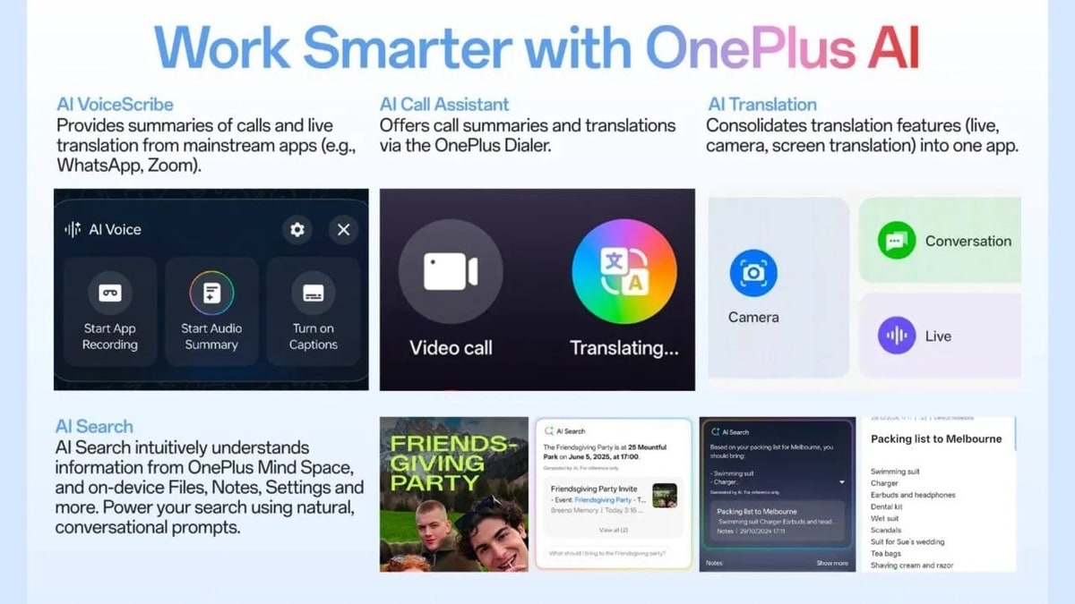 Für die Zusammenarbeit im globalen Kontext bietet OnePlus verschiedene KI-gestützte Funktionen an. Der AI Voice Scribe unterstützt bei der Aufzeichnung und Übersetzung von VoIP-Gesprächen in über 20 Sprachen, während der AI Call Assistant diese Funktionen für klassische Telefonate bereitstellt. Die neue AI Translation App ermöglicht Echtzeit-Übersetzungen von Text, Kamera und Bildschirminhalten.