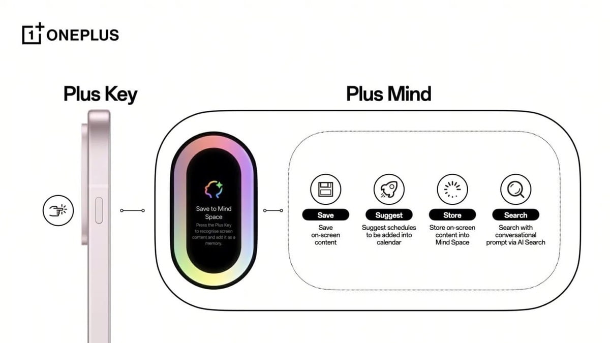 Neu ist die Plus-Mind-Funktion, die als digitaler Gedächtnisassistent fungiert. Per Dreifinger-Wischgeste oder Druck auf den Plus Key lassen sich Inhalte im sogenannten Mind Space speichern. Das System analysiert dabei intelligent gespeicherte Informationen wie Restaurantempfehlungen, Flugdetails oder WhatsApp-Nachrichten und macht diese per KI-Suche schnell wieder auffindbar.