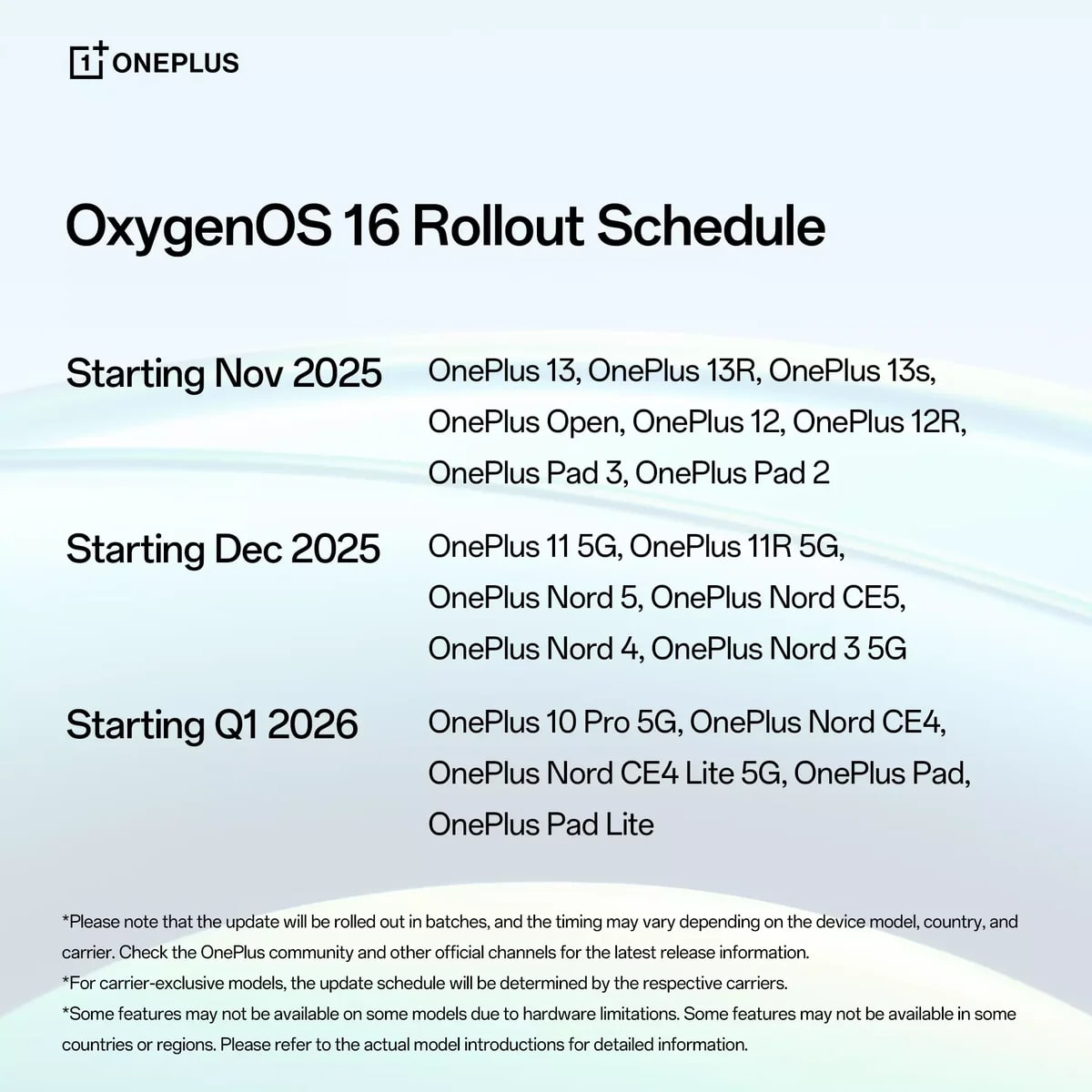 Entsprechende Updates auf OxygenOS 16 sollen auf erste OnePlus-Geräte der jüngeren Generation bereits im November ausrollen. Dazu zählen neben der OnePlus-13-Reihe und der OnePlus-12-Reihe auch das OnePlus Open sowie das OnePlus Pad 2 sowie 3.