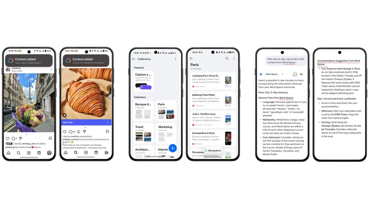 OnePlus hat sein neues Update auf OxygenOS 16 vorgestellt. Hierbei handelt es sich um Android 16 mit dem Design-Überzug von OnePlus sowie einigen OnePlus-spezifischen Funktionen. KI-Funktionen sind in aller Munde und auch OnePlus möchte da mitmischen. Logisch, diverse Gemini-Funktionen sind mit von der Partie. Aber damit nicht genug. Durch ein langes Drücken auf die Plus-Taste lassen sich einminütige Sprachnotizen für den sogenannten Mind Space aufnehmen. Hier werden die Audiodaten dann transkribiert und mit KI-generiertem Titel sowie Zeitstempel archiviert. – erinnert etwas an den Essential Space von Nothing. Zudem wird der Inhalt für relevante Tags und auf Aufgaben bzw. Folgeaktionen hin analysiert und mit verwandten Erinnerungen sowie Ideen aus dem Mind Space verknüpft. Gemini kann zudem auch per Stimme nach bestimmten Notizen im Mind Space suchen und auch auf gespeicherte Inhalte für kontextbezogene Rückfragen zurückgreifen.