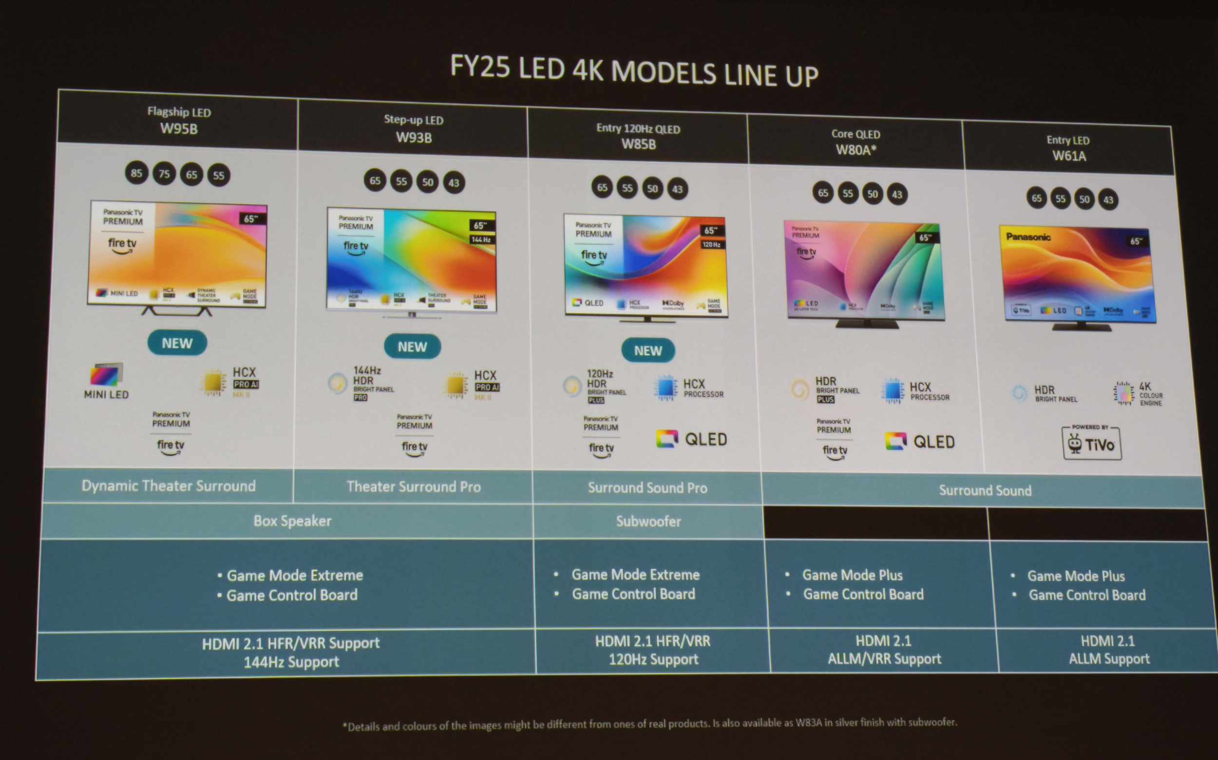 Der W95B bietet laut Panasonic ein besonders starkes Lautsprechersystem mit einem kleinen Subwoofer mit 20 Watt. Gemeinsam mit dem W93B bietet er zudem den Penta-Tuner des Herstellers für TV-Empfang via Antenne, Kabel, Satellit, IPTV und TV-to-IP. Auch Apple AirPlay und Kompatibilität zu Apple Home steht zur Verfügung.
