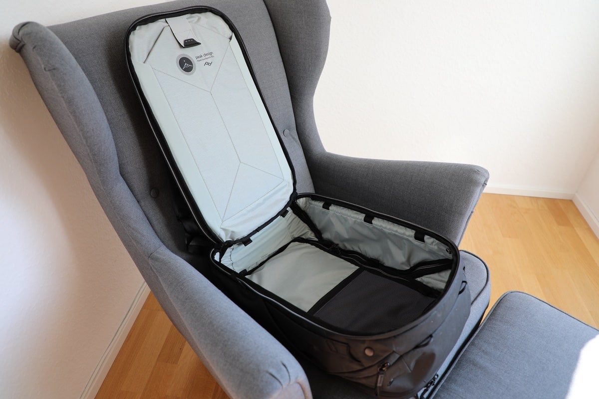 Während der Roller Pro quasi ein Koffer mit Vorzügen von Rucksäcken und Weichschalen-Koffern ist. Der Travel Backpack hat auch etwas Koffer-artiges: So lässt sich der Packraum, wie bei einem Kofferdeckel, komplett aufklappen, um Zugriff auf den Inhalt zu bekommen. Damit soll ein Wühlen im Rucksack-Inneren der Vergangenheit angehören.