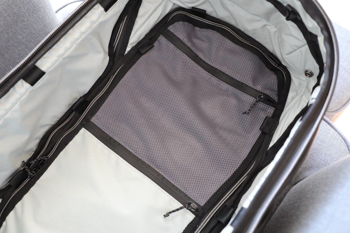 Der Innenraum ist durchaus geräumig. An die Fächer zwischen den beiden großen Fächern kommt man sowohl vom großen „Kofferfach“, als auch von der Rucksackseite dran – das ist beidseitig per Reißverschluss zugänglich.