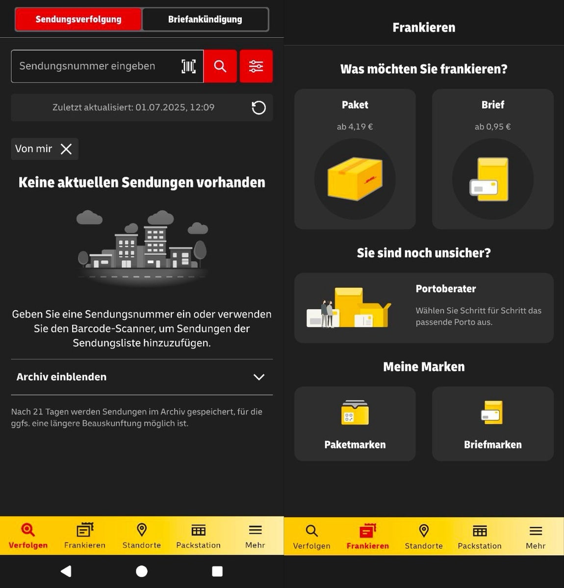 Ihr nutzt die Post & DHL-App unter Android für alles Mögliche rund um Brief und Paket? Dann gibt es kleine Nachrichten für alle Nachtschwärmer und Fans des Dunkelmodus. Den gibt es eben jetzt als kleine Überraschung. Vermutlich hat man die Portoerhöhungen auch genutzt, um die Entwickler mal dahingehend zu entlohnen 😉 Viel bleibt darüber nicht zu sagen, probiert es gerne selbst einmal aus, ob euch das etwas bringt und euren Augen schmeichelt. (Update: iOS auch)