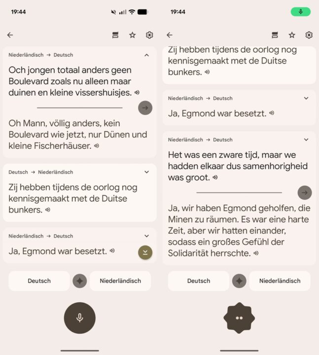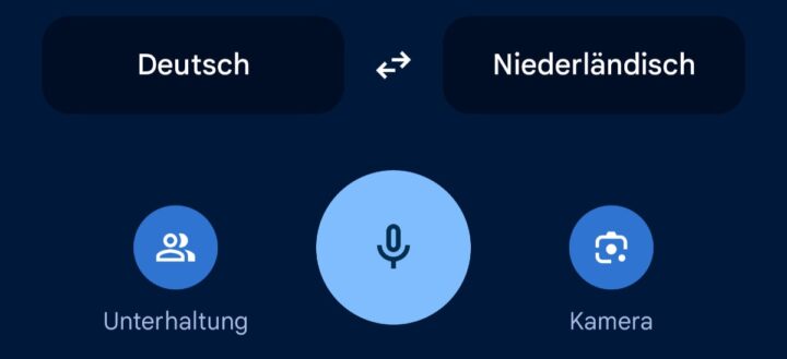 Schon vor Urlaubsantritt habe ich mir nicht nur Offlinekarten für Google Maps und CoMaps auf mein Pixel heruntergeladen, sondern auch das Sprachpaket „Niederländisch“ für den Übersetzer. Damit ist sichergestellt, dass ich die Dienste auch ohne Internetverbindung weiter nutzen kann. Die App bietet im unteren Bereich die „Unterhaltung“ an – eine Funktion, die gewissermaßen ein offenes Mikrofon anbietet, das lauscht, welche Sprache gerade dominant zu hören ist, jene übersetzt und dann auch auf eurer gewählten Sprache wieder ausgibt, sowohl als Text, als auch akustisch.