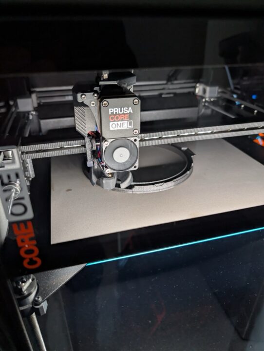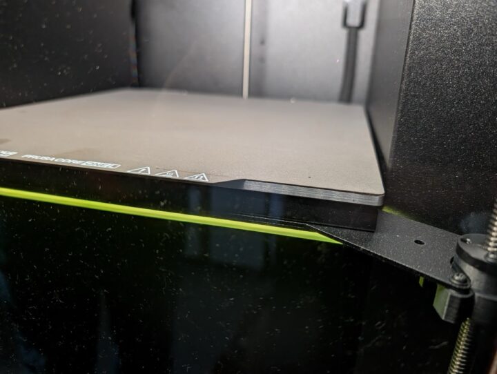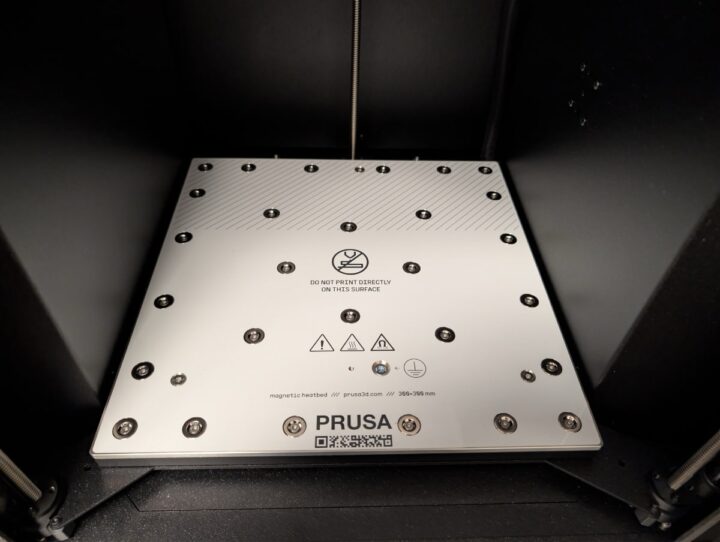 Das Highlight ist für mich neben dem größeren Bauraum tatsächlich das Wärmemanagement. Der Drucker ist geschlossen, und Prusa nutzt das 230V-Heizbett aktiv, um den Bauraum zu heizen. Unter dem Bett sitzen zwei Lüfter, die die Luft umwälzen. Das sorgt dafür, dass wir im geschlossenen Bauraum recht zügig auf bis zu 60 Grad Celsius kommen. Das ist für Materialien wie ABS oder ASA Gold wert und verhindert Warping (das Verziehen des Bauteils) effektiv.