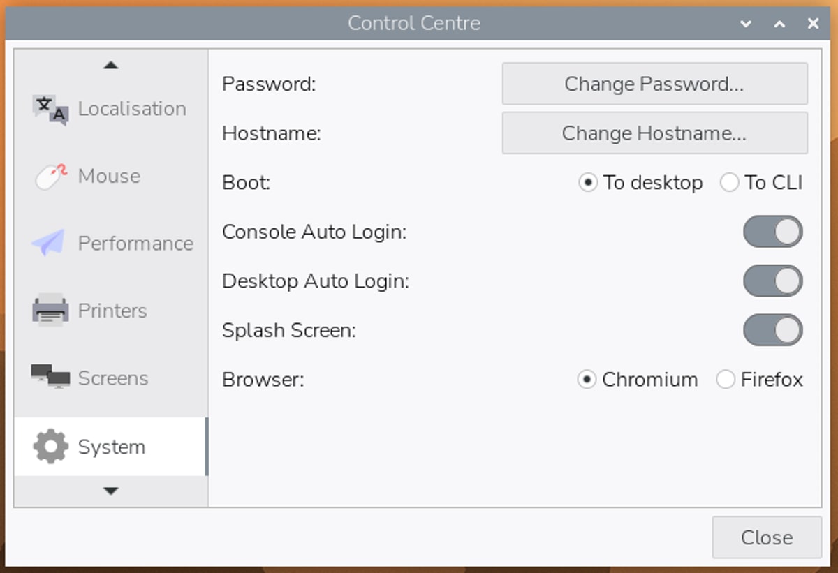 Eine weitere Neuerung ist das Control Center, das die verschiedenen Einstellungen unter einer Oberfläche vereint. Hier finden sich jetzt die Konfiguration für Raspberry Pi, Erscheinungsbild, Maus und Tastatur, Bildschirm und Drucker. Das Control Center ist modular aufgebaut und lässt sich durch Plugins erweitern.