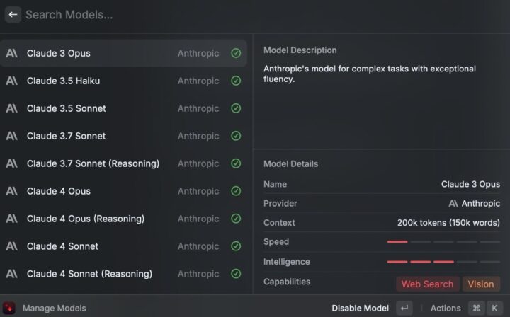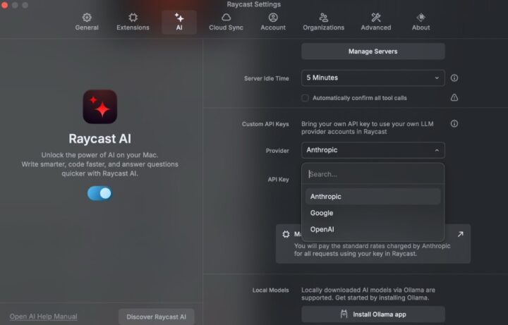 Raycast: BYOK, neue Modellverwaltung & experimentelle KI-Features