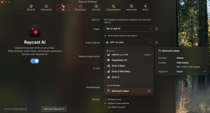 Raycast ist unser tägliches Tool für effizientes Arbeiten am Mac, egal ob für Shortcuts, die Suche, Automatisierungen oder KI-gestützte Workflows. Mit Version 1.99 könnt ihr jetzt auch eigene lokale KI-Modelle direkt in Raycast AI einbinden und das komplett ohne extra Kosten. Raycast nutzt dafür im Hintergrund Ollama und die damit zur Verfügung stehende riesige Modellpalette. So geht die Installation und Nutzung: