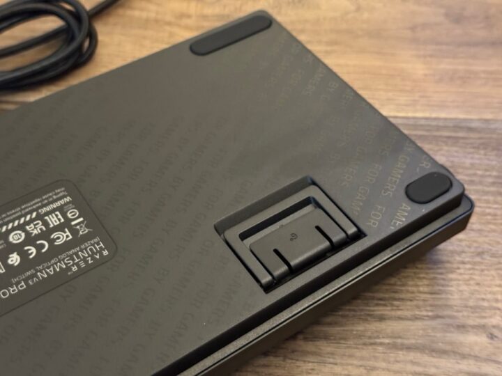 Die Switches sind in der Praxis mit nur 40 Gramm Auslösekraft leichtgängig und sehr präzise. Ich habe den Auslösepunkt fürs Schreiben etwas höher gelegt, um Tippfehler zu vermeiden. Die Keycaps fühlen sich angenehm griffig an und klappern nicht. Was mich persönlich stört, ist, dass die Huntsman V3 Pro TKL recht laut ist. Wer viel im Homeoffice arbeitet oder in Meetings tippt, sollte das bedenken. Hier wäre eine zusätzliche Schalldämmung wünschenswert gewesen. Auch das Geräusch der Tasten ist kein angenehmes gedämpftes Klicken. Das gefällt mir bei der Turtle Beach Vulcan II TKL Pro besser.