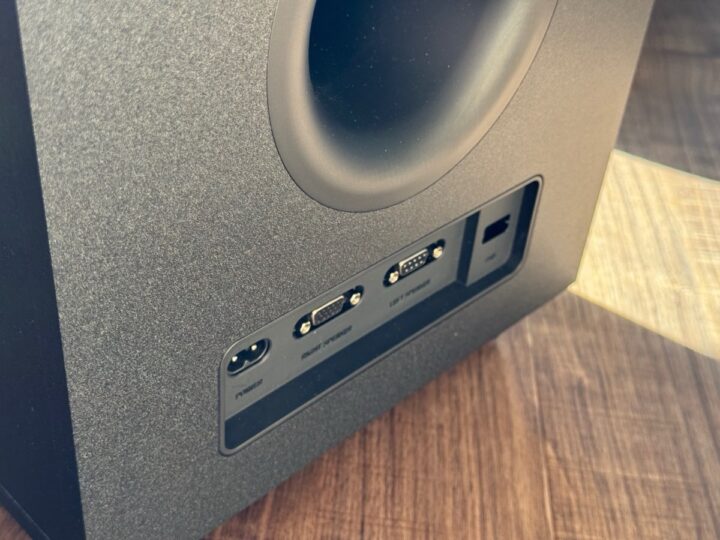 Angeschlossen sind die Teile schnell. Man verbindet die Lautsprecher und den Subwoofer mit ebenfalls ziemlich robust wirkenden Kabeln und schließt die Einheit dann per USB-C an den Rechner an. Strom darf natürlich auch nicht vergessen werden.