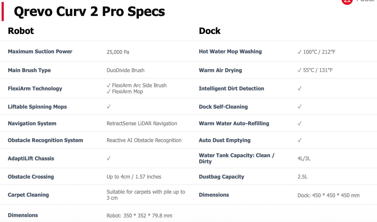 Der erste Qrevo hat 5L, der Curv nur noch 3,5L Frischwasser.