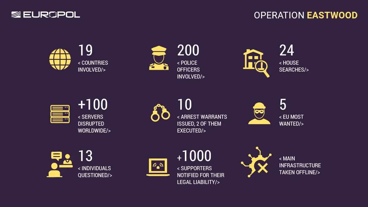 NoName057(16) hatte in der Vergangenheit etwa große Banken in Schweden, sowie über 250 Firmen und Institutionen in Deutschland angegriffen. Viele weitere Angriffe hatte es z. B. in der Schweiz oder den Niederlanden und weiteren Ländern gegeben. An der Operation Eastwood haben als Koordinierer natürlich auch Europol und dessen Joint Cybercrime Action Taskforce (J-CAT) mitgewirkt.