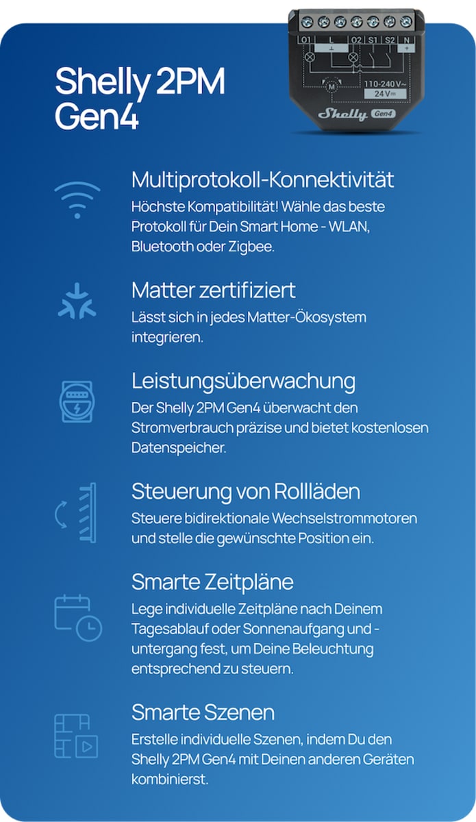 Shelly 2PM Gen 4 ist da: Matter und Multiprotokoll-Konnektivität für Rollläden und Jalousien