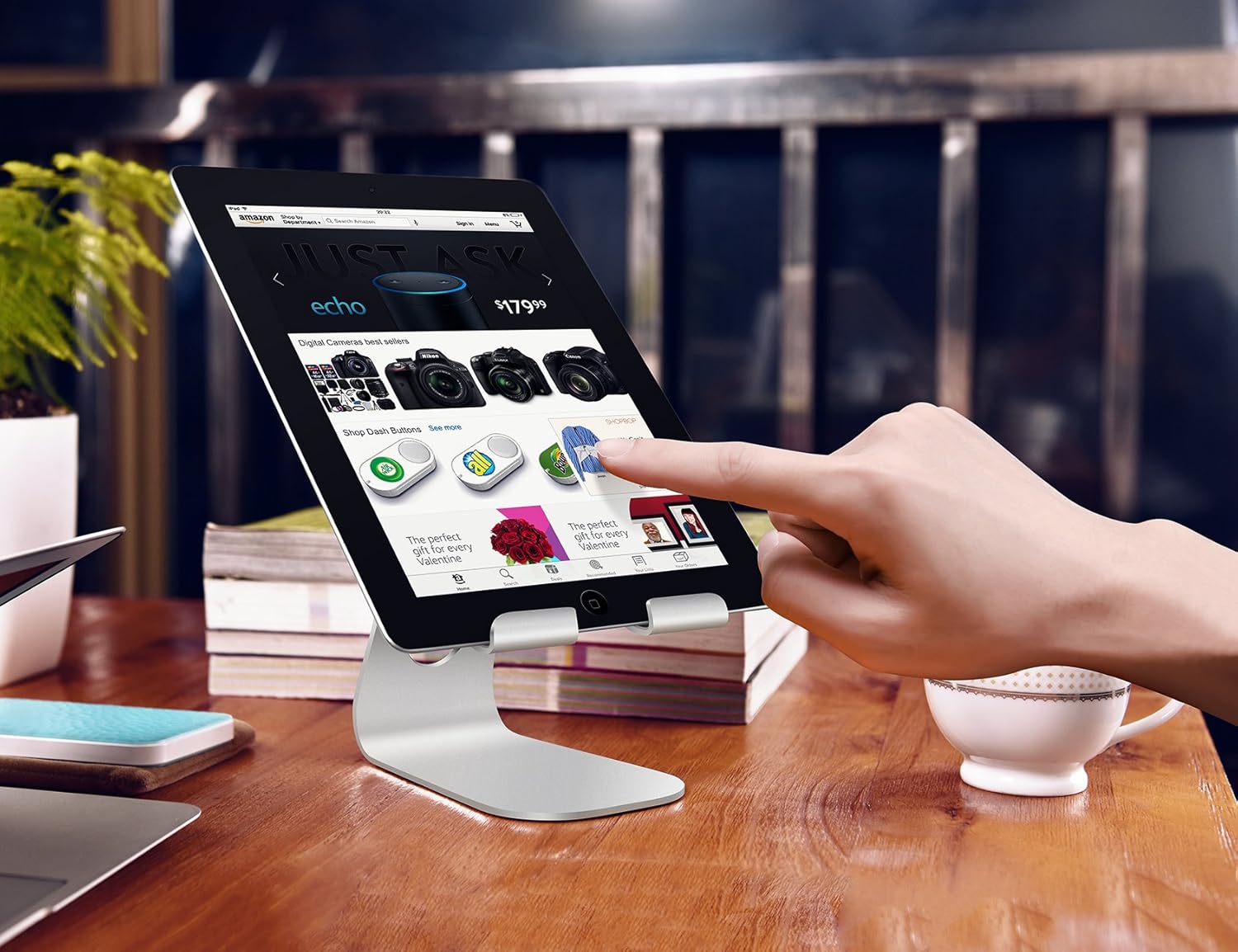 So einen Ständer https://images-na.ssl-images-amazon.com/images/I/81F1FLBLM%2BL._SL1500_.jpg für 19 € dann unten den Echo Dot drunter stellen und den Dot mit dem Tablet als Display/Kamera koppeln.