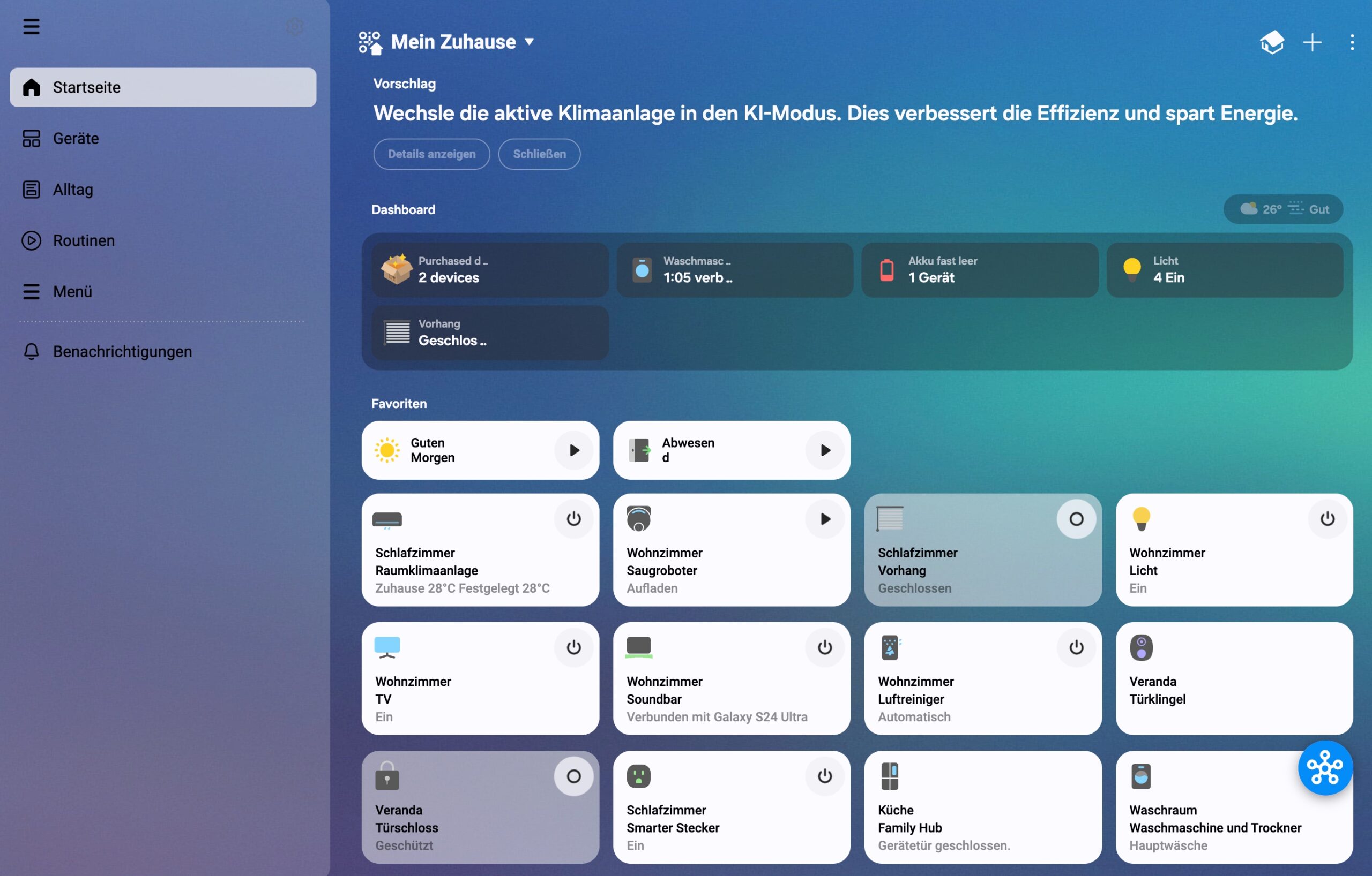 Samsung SmartThings bekommt ein umfangreiches Update für iOS-Nutzer (und nicht nur die). Die Smart-Home-Plattform erweitert die Funktionalität der Apple-Watch-App und führt einen KI-gestützten Assistenten für Routinen ein. Zudem gibt es endlich den lang erwarteten Dark Mode. Die überarbeitete Apple-Watch-App ermöglicht nun mehr als nur das Ausführen manueller Routinen. Nutzer können zwischen verschiedenen Standorten wechseln und einzelne Geräte direkt von der Uhr aus steuern. Das bedeutet in der Praxis: Die Haustür öffnen und das Flurlicht einschalten, alles vom Handgelenk aus.