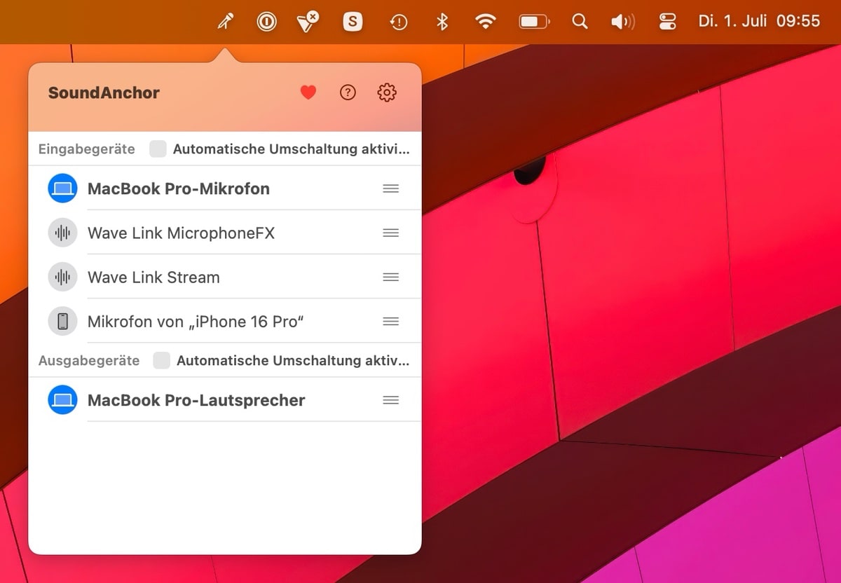 SoundAnchor: Ein- und Ausgabegeräte am Mac schnell festlegen