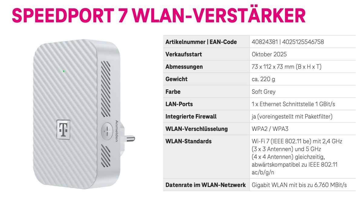 Speedport 7 und Speedport 7 WLAN-Verstärker (Plus) sind offiziell