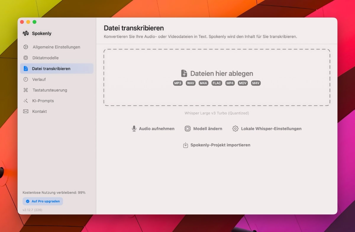• Alles was MacWhisper kann bezüglich transrkiption kann spokenly kostenlos. Also lokale Modelle. Kannst auch eigene API Keys kostenlos nutzten. Das Abo ist nur dafür wenn du deren API Keys nutzten willst. Das wirklich praktische ist das direkte Einfügen. Das hat bei MacWhisper immer genervt dass man das noch selber machen muss.