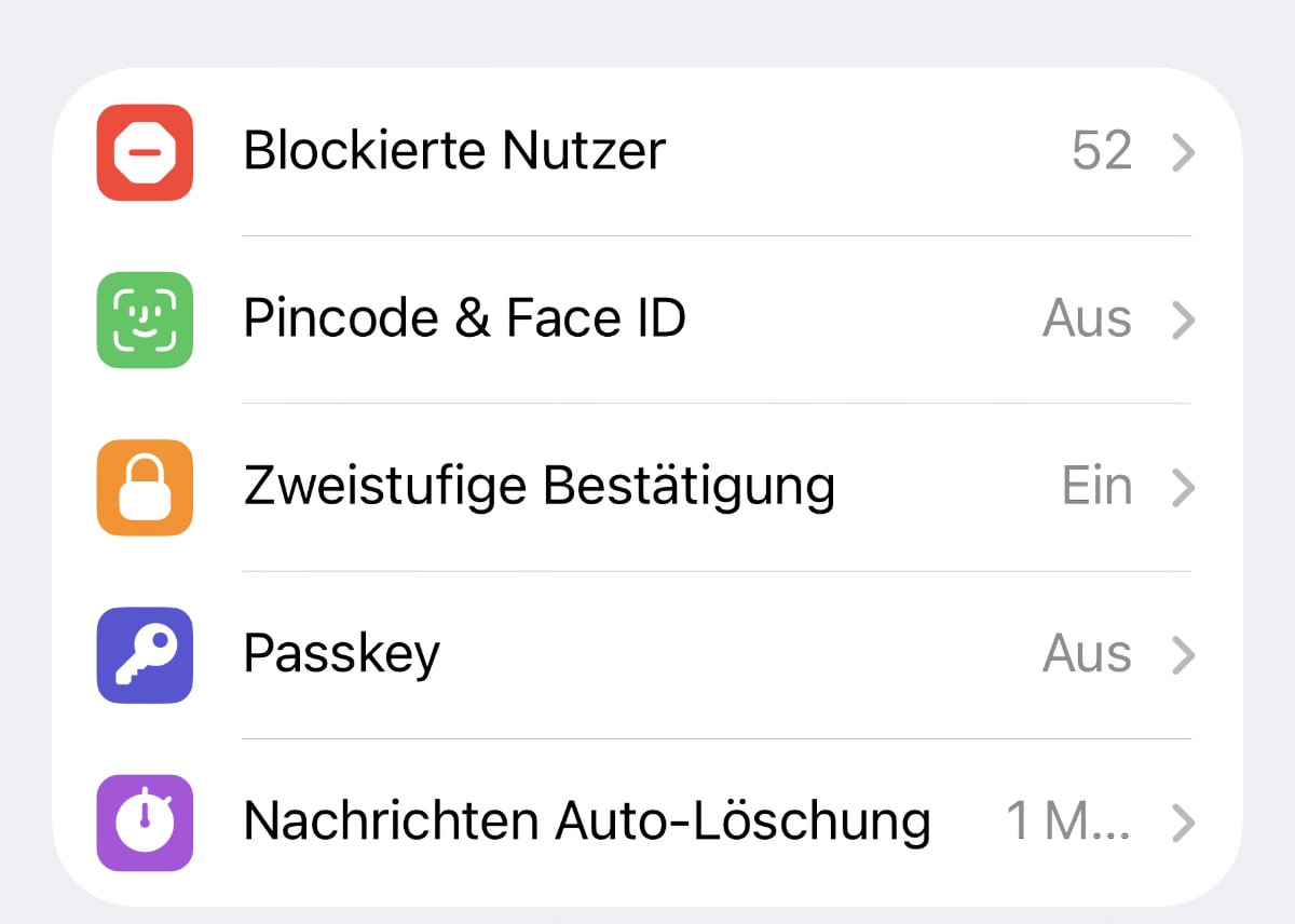 Die Schlüssel liegen verschlüsselt auf dem Gerät und lassen sich über die gängigen Passwortmanager von Apple oder Google synchronisieren. Zu finden ist die Option in den Einstellungen im Bereich Privatsphäre und Sicherheit. Trotz der bequemeren Anmeldung bleibt die Verknüpfung mit einer aktiven Telefonnummer zwingend erforderlich.