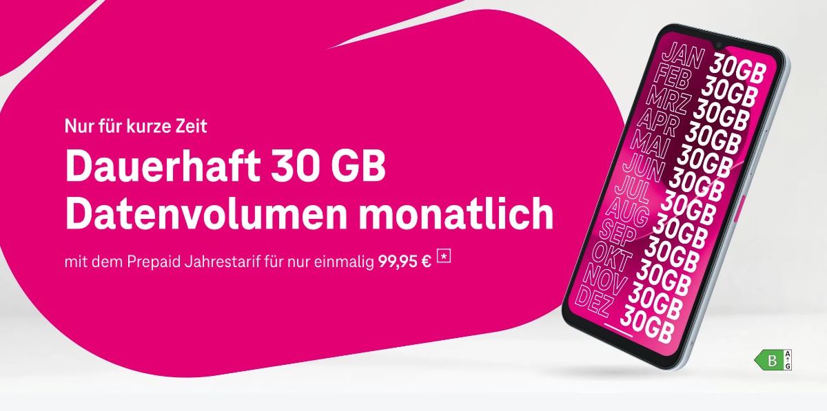 Telekom Prepaid-Jahrestarif: Aktion bringt 30 GB Datenvolumen auch für Bestandskunden