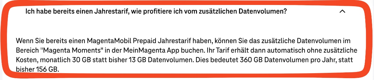 Das gilt bei Neuabschluss, aber auch Bestandskunden schauen nicht in die Röhre. Wer den Tarif bereits nutzt, kann sich das Upgrade laut den FAQ auf der Webseite aktivieren. Oft hilft da auch der direkte Weg über die MagentaApp. Die Aktion soll bis zum 14. Januar laufen. Nettes Detail am Rande: Das erhöhte Volumen gilt wohl dauerhaft, solange der Tarif besteht.