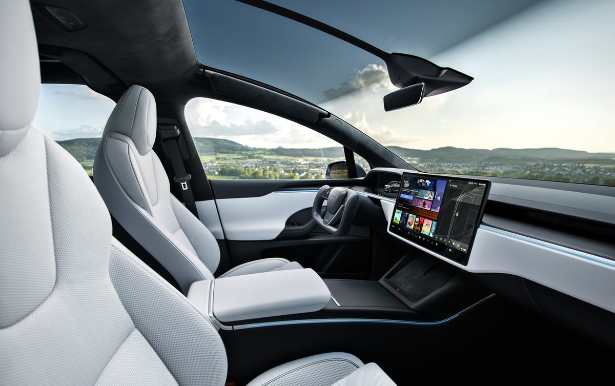 Die Plaid-Version des Model S wurde natürlich auch aufgewertet. Eine neue Front- und Heckschürze, Karbon-Spoiler und ein verbesserter Diffusor machen den Stromer angeblich noch windschlüpfriger. Die überarbeiteten Karbon-Rotoren in der Antriebseinheit sorgen für noch mehr Power, heißt es weiter. Die Reichweiten? Das Model S schafft nach WLTP bis zu 744 Kilometer, beim Model X sind es bis zu 600 Kilometer. In Sachen Beschleunigung bleiben beide ihrer Linie treu – die Plaid-Versionen sprinten in 2,1 (Model S) bzw. 2,6 Sekunden (Model X) auf Tempo 100.