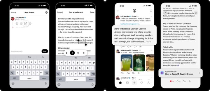 Erst Ende August wurde für die Social-Media-Plattform Threads angekündigt, dass man dort schon bald Beiträge in „Artikellänge“ verfassen können soll. Nun ist es ganz offiziell, ab sofort können an einen Thread-Beitrag angehängte Texte mit einer Länge von bis zu 10.000 Zeichen veröffentlicht werden. Diese „Textanhänge“ sind dabei nicht Teil des eigentlichen Posts, der weiterhin als knappe Einleitung dient, sondern werden als eine Art ausklappbarer Zusatzinhalt direkt im Feed dargestellt. Damit reagiert die Plattform auf die etablierte Praxis, längere Inhalte per Screenshot zu teilen, da das bisherige Limit von 500 Zeichen oft nicht ausreichte.