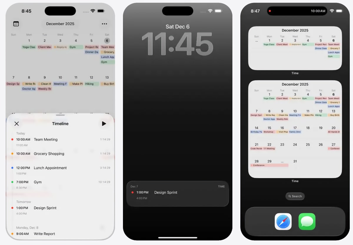 Hinsichtlich der Darstellung bietet die Software eine Monats- sowie eine Wochenansicht an. Wer Termine oder Aufgaben zeitlich verlegen muss, erledigt das per Drag & Drop. Für den schnellen Überblick direkt auf dem Homescreen oder im Sperrbildschirm stehen entsprechende Widgets und Live Activities zur Verfügung.