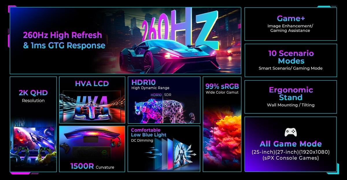 PS: 260 hz nur Interessant wenn man auch entsprechende FPS Zahlen hat… wer kommt schon in 2K so hoch.. daher zw 180 hz bis 144 völlig ausreichend !