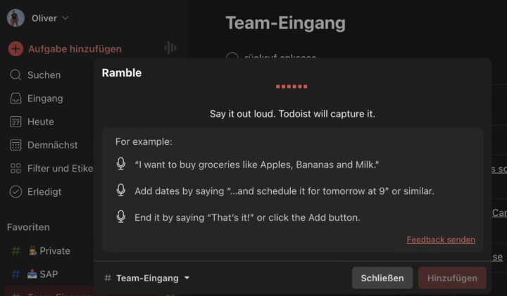 Todoist: „Ramble“ lässt euch per Sprache einen Braindump erstellen