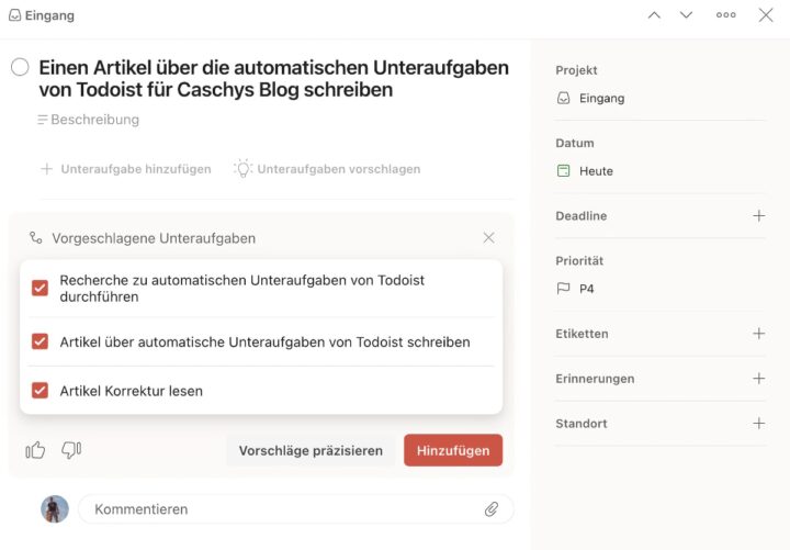 Todoist testet KI-Feature für automatische Unteraufgaben