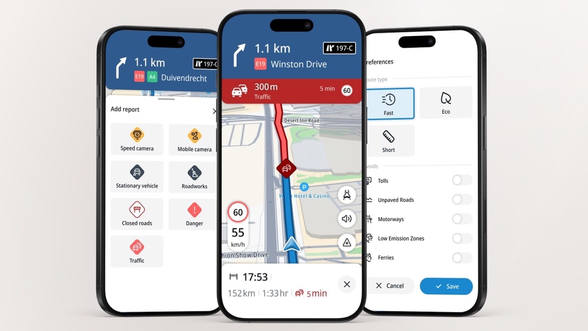 Der Tom startet automatisch mit der Fahrt und bezieht seine Daten aus der ebenfalls neu vorgestellten TomTom-App. Die läuft im Hintergrund und versorgt Tom zuverlässig mit allen wichtigen Informationen. Wer eine Route plant, bekommt über die App zusätzlich Navigationshinweise.