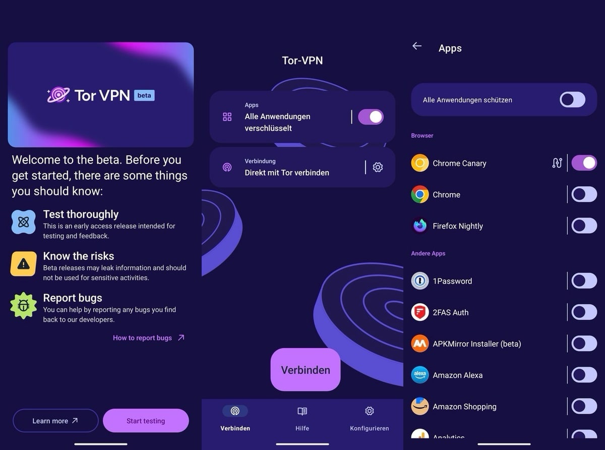 Technisch gesehen verhält sich die App wie ein klassischer VPN-Client. Der Unterschied liegt in der Weiterleitung des Datenverkehrs über die dezentralen Tor-Server. Nutzer können dabei selbst entscheiden, ob sie den gesamten Datenverkehr oder nur ausgewählte Apps über das Tor-Netzwerk leiten möchten. Die Verschlüsselung und das Routing über mehrere Server sorgen dafür, dass Standort und Identität der Anwender geschützt bleiben. Ein offizielles Veröffentlichungsdatum für die finale Version steht noch nicht fest. Das Ganze ist übrigens quelloffen und hier einsehbar.
