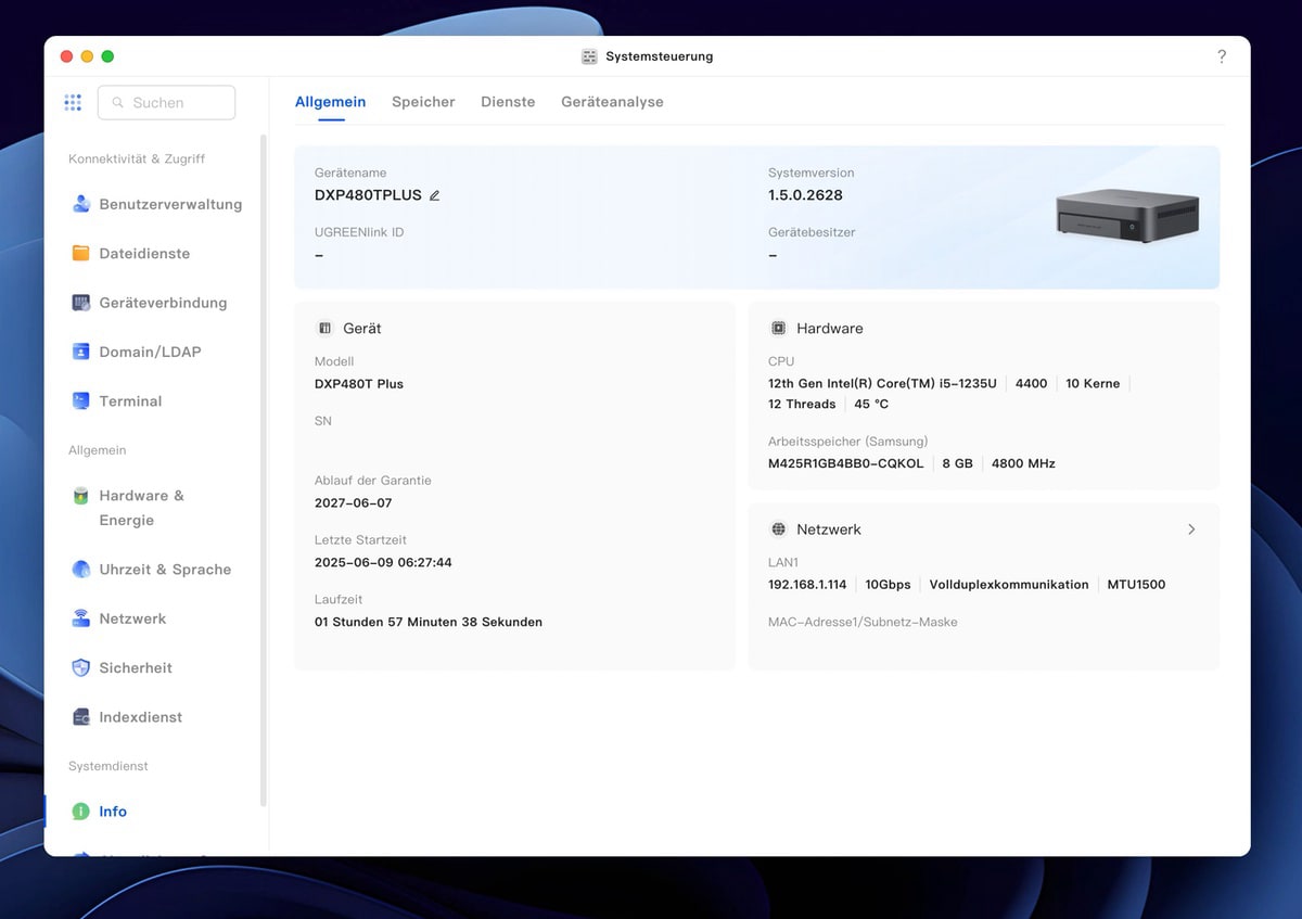 Betriebssystem UGOS Pro CPU-Modell 1235u