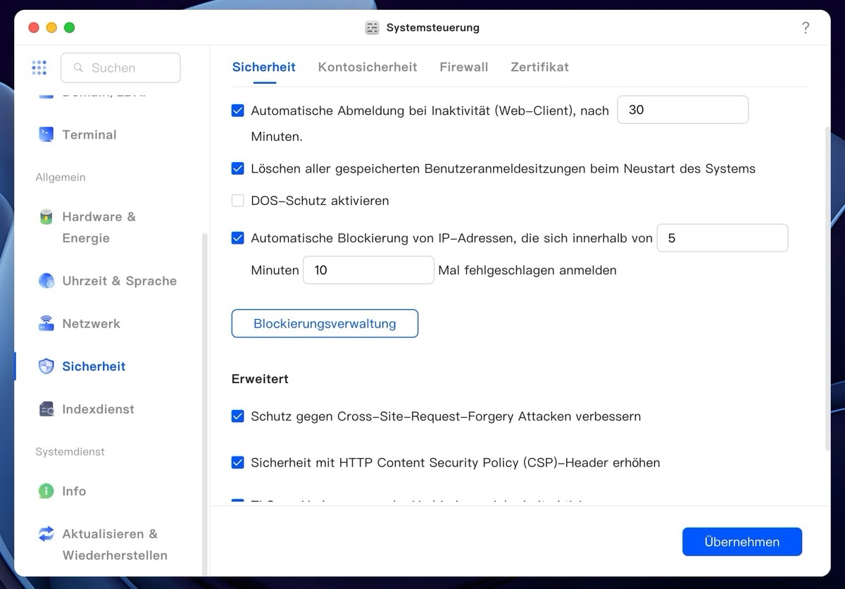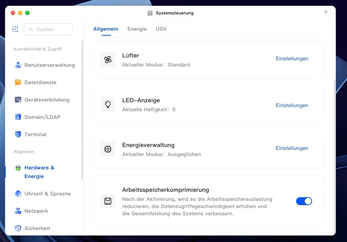 Ach so, Stromverbrauch? Die potente Hardware verbraucht da natürlich etwas. Im Schnitt lag ich da beim Messen bei ungefähr 16,5 Watt Leistungsaufnahme um Leerlauf. Beim Streaming von Filmen im Netzwerk an einen Mac mit Infuse war es tatsächlich auch sehr entspannt, da lag ich bei nur 17 Watt. Beim Kopieren großer Datenmengen aus dem Netz schwankte es immer etwas, da war alles von 25 Watt bis 45 Watt drin. Das muss man sich vielleicht einmal alles durchrechnen, falls man plant, die Kiste 24/7 mit Docker-Containern usw. laufen zu lassen, oder ob für dauerhafte Docker-Tools vielleicht ein Raspi besser ist. Ich zahle beispielsweise 29,77 Cent/kWh bei meinem Versorger. Rechne ich das NAS mal pauschal mit 20 Watt, dann wären das im Jahr 20 Watt x 24 Stunden x 365 Tage = 175,2 KWh, was im Jahr dann ungefähr 52 Euro Stromkosten sind. Und wenn ihr auf Zack seid und viel macht, dann rechnet mal lieber mehr ein.