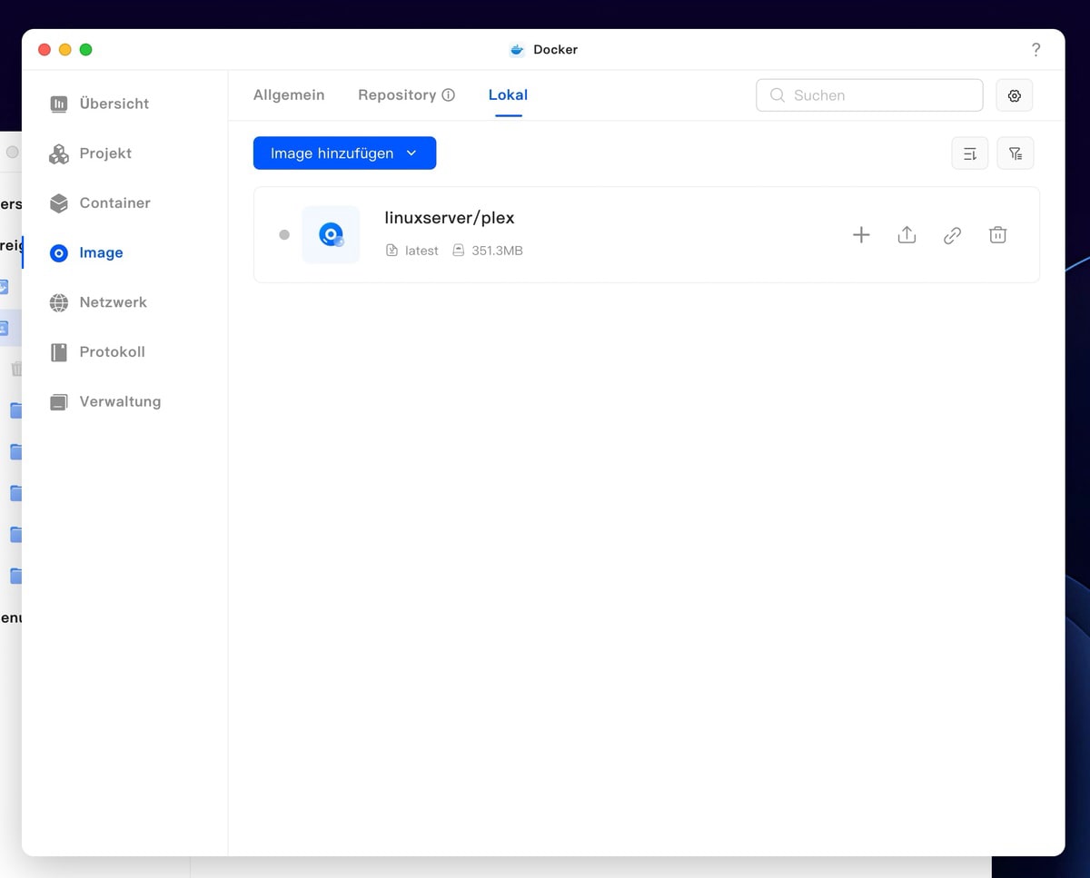 Nach der Docker-Installation geht es an die Einrichtung des Plex-Containers. Dafür wird im Docker-Bereich unter „Image“ nach „linuxserver/plex“ gesucht und das entsprechende Image heruntergeladen. Danach geht es daran, die entsprechenden Ordner für Plex in einem freigegebenen Ordner mit den entsprechenden Rechten anzulegen.