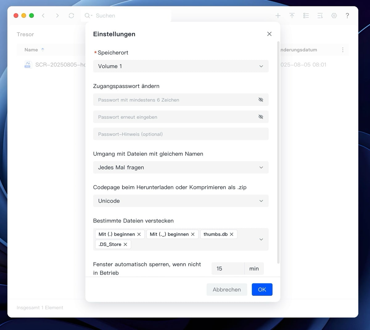 Auch bei einer Deinstallation der Anwendung oder einem Reset des NAS-Systems bleiben die verschlüsselten Daten erhalten. Sie sind an den gewählten Speicherort gebunden und können nach einer Neuinstallation mit den ursprünglichen Zugangsdaten wieder entschlüsselt werden.