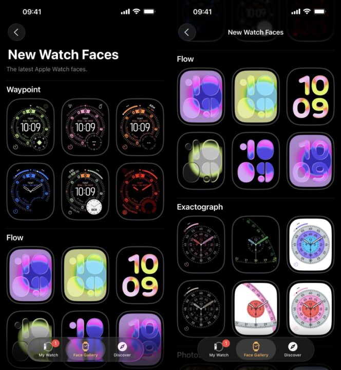 Am 15. September bringt Apple watchOS 26 auf die Apple-Smartwatches. Das Update bringt neben allerlei Anpassungen und dem neuen Liquid Glass auch vier neue Zifferblätter mit. Neu dabei ist beispielsweise Exactograph (eine moderne Anzeige mit extra Sekundenring) und Flow (flüssige, farbige Ziffern, die sich beim Bewegen des Handgelenks verändern). Diese beiden Zifferblätter bekommt jeder Nutzer.