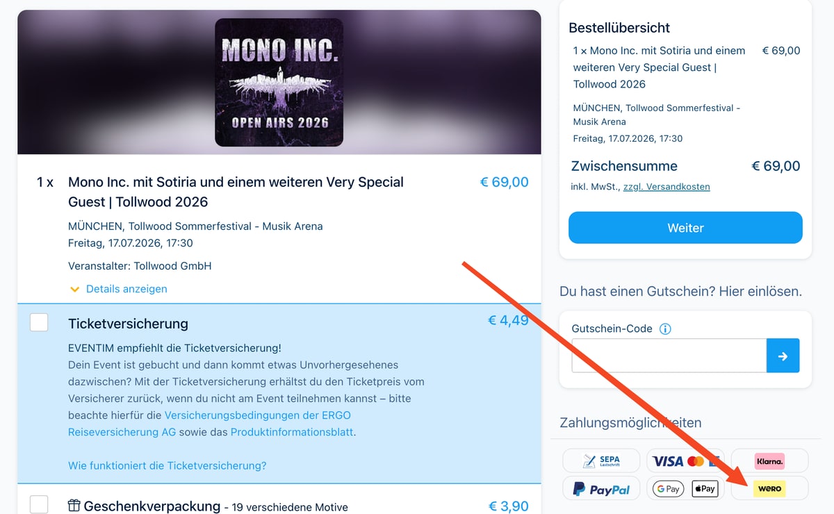 Die europäische Paypal-Alternative Wero hat den Sprung in den Onlinehandel geschafft. Ab sofort lässt sich der Bezahldienst beim Ticketverkäufer Eventim nutzen. Wer dort Karten für Konzerte kauft, findet an der Kasse neben Klarna, Kreditkarte, Überweisung und Paypal jetzt auch Wero als Option. Nach der Auswahl von Wero erscheint ein QR-Code auf dem Bildschirm, der mit dem Smartphone gescannt wird. Die Banking-App öffnet sich automatisch, dort kann die Zahlung geprüft und freigegeben werden. Soweit die Theorie.